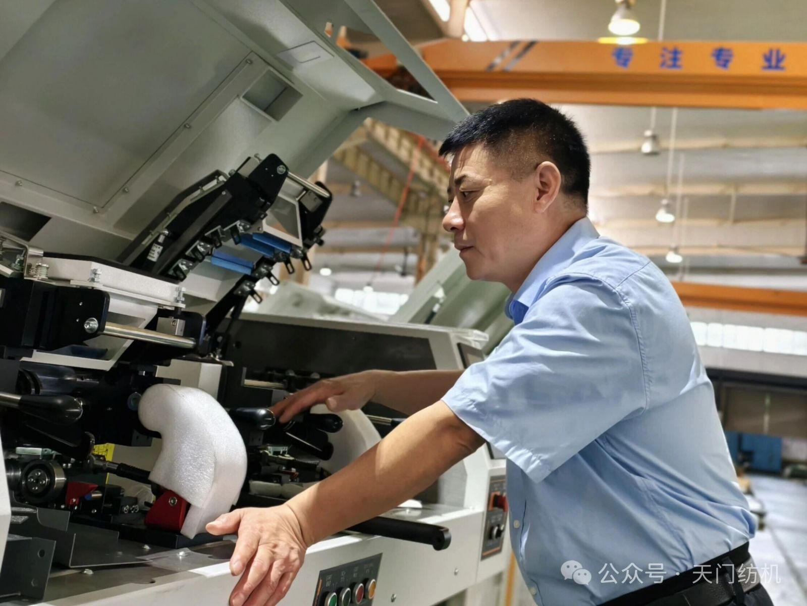 这样的“义气小事”,早已刻进他的工作日常。某客户新厂初建,虽选购了天门并条机,但因车间交叉施工、人手不足,设备安装进度一再滞后。倪雪峰得知情况后,没有等客户开口求助,也没有以“销售不负责安装” 为由推脱,而是直接带着简单的行李驻扎在厂区。清理施工废料、协助设备吊装、手把手教工人调试操作、制定基础维护流程…… 他把自己当成了客户的 “编外员工”,连续多日泡在工地,最终帮客户抢回了宝贵的投产时间。此后,他还坚持每月上门回访,帮助车间调整工艺,解决生产中出现的问题,把 “一次性销售”变成了“长期陪伴式服务”,得到了客户上至老板下至普通工人的交口称赞。