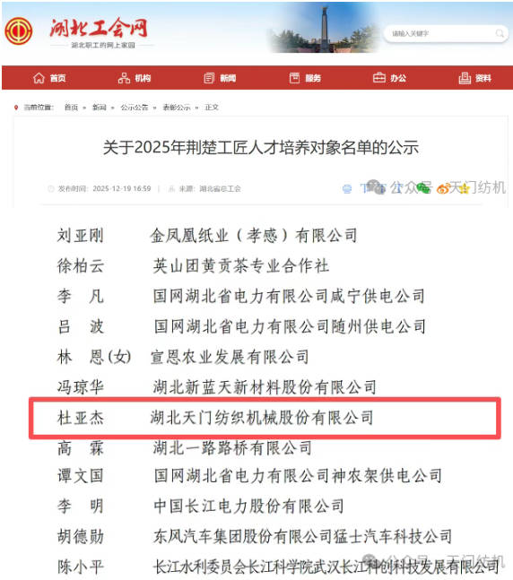 近日,天门纺机总工程师杜亚杰成功入选荆楚工匠人才培养对象,这份荣誉既是对他二十余年深耕纺织装备研发领域的认可,更是对他以匠心守初心、以创新破难题的生动诠释。