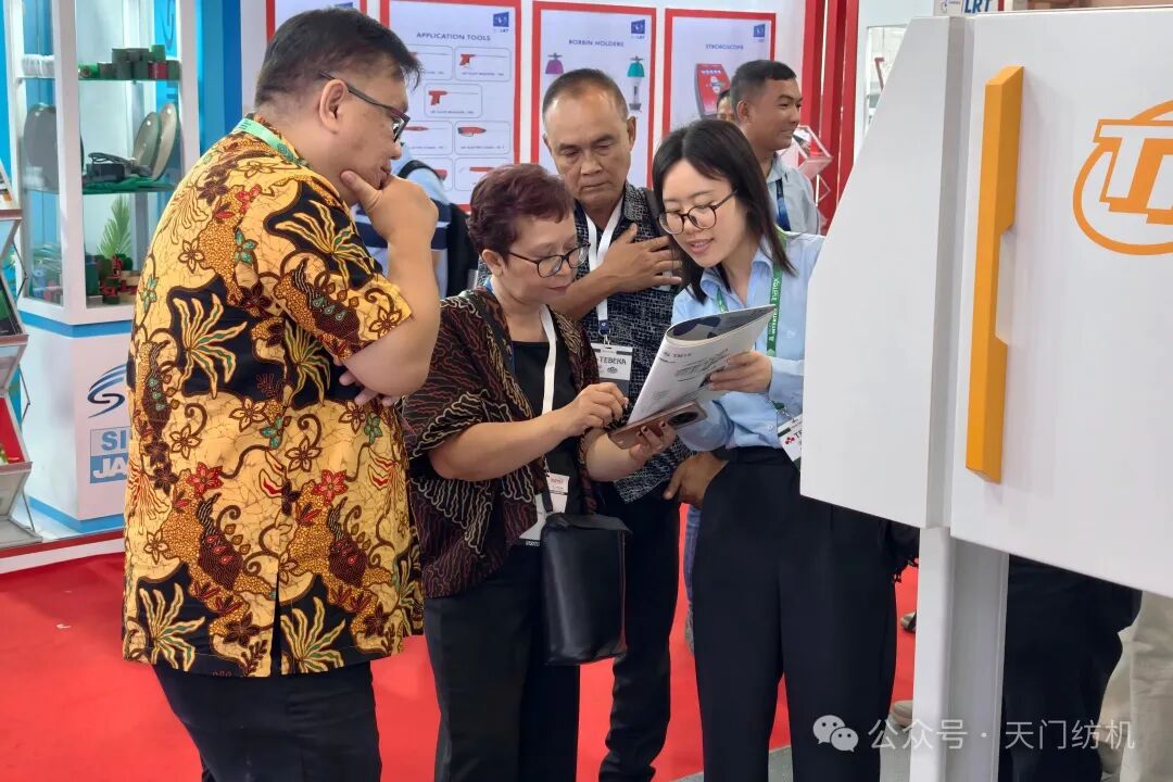 展会期间,天门纺机展位前人头攒动、人气爆棚,往来客商络绎不绝,洽谈氛围热烈。现场迎来了KAHA TEX、SSM等20余家印尼知名纺织企业莅临参观、深度交流,大量新客户,被产品稳定高效的运行性能、前沿的创新技术所打动,主动留存联系方式,期待后续深度合作。