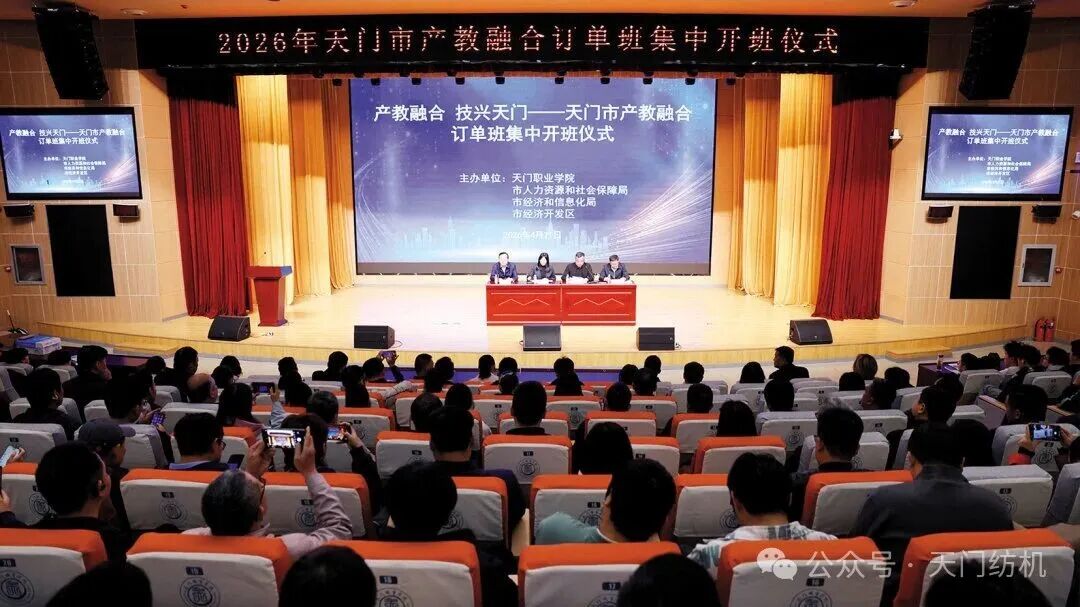 天门纺机作为全市重点企业代表受邀参会,14名学员参加专项培训,主动响应“技兴天门”号召,深度参与产教融合,以人才培育为抓手,为企业智能化转型、地方产业升级筑牢人才根基。