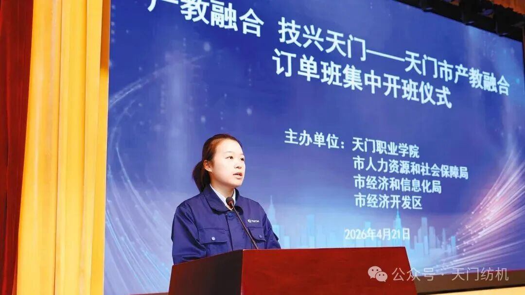 仪式现场,天门纺机员工曾诗铭作为全市学员代表发言,她表示,将珍惜学习机会,把所学知识和技能灵活运用到实际工作中,努力成为技艺精湛、技能过硬的工匠人才,为企业高质量发展和天门产业发展贡献自己的力量。